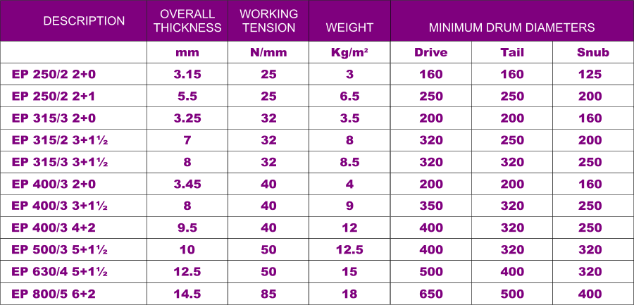 | Using Serial Numbers to Identify Belt Types I.E.:- EP 400/3 3+1 |