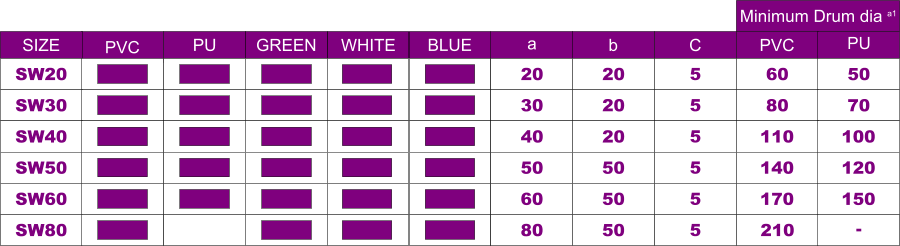 | a1: All data provided are approximate values under ‘normal climatic conditions’ ie - 20OC / 50% humidity. Lower temperatures will dictate a larger drum diameter requirement. For detailed material properties and other colours, please contact The Burdens Group. |